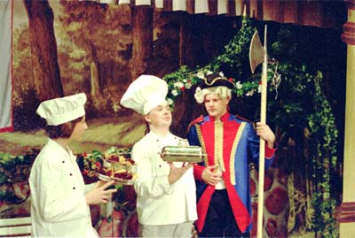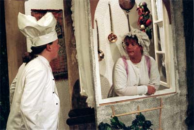 gebotenen "Probenverpflegung" zusammenhängt, die Souffleuse gibt bei